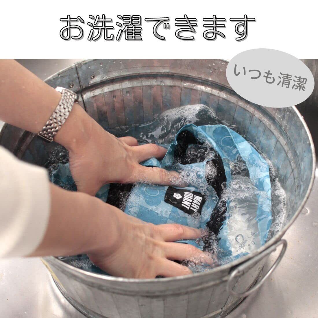【MARY QUANT】アイコン""デイジー""と市松柄を組み合わせ代表的なデザインです。どんな服装にも合わせやすようワントーンでまとめました。汚れても洗えるので常に清潔にお使いいただけます。