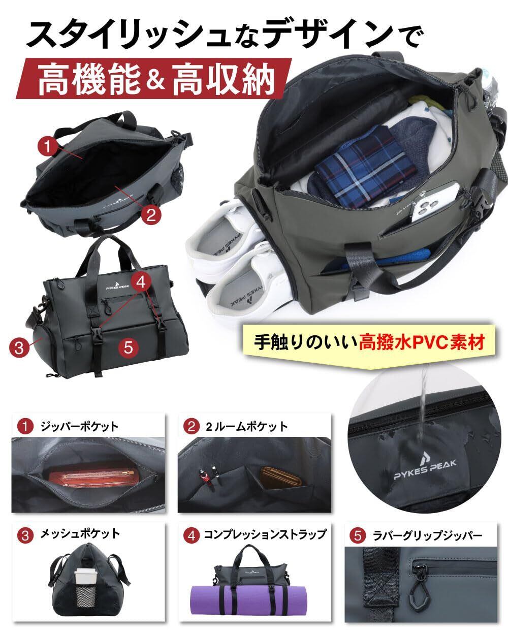PYKES PEAK(パイクスピーク) スポーツショルダーバッグ エナメルバッグ 3WAY 23L 大容量 ジム ゴルフ アウトドア スポーツ ランニング 旅行 出張 バッグ ショルダー 【グレー Mサイズ】